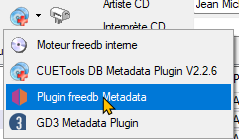 Si le CD n'est pas trouvé dans la base FreeDB, vous pouvez sélectionner une autre base de données via le pictogramme situé à gauche de la "boite aux lettres" en cliquant sur la petite flèche :![]()