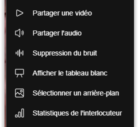 2. Les actions disponibles en séance pour faciliter les interactions entre les participants Nota Bene : la fonction "Partager l'audio" n'est pas disponible sur les navigateurs exploitant le moteur de rendu Gecko comme Firefox. Un article est dédié à ce problème. |