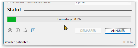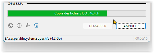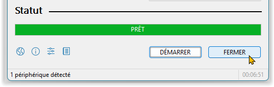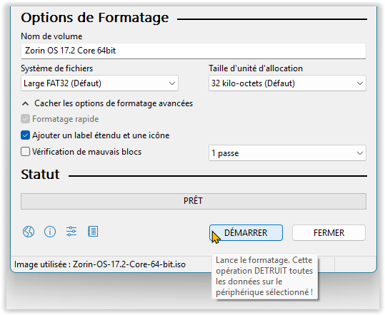 Le traitement achevé, la barre de statut annonce que la clé USB est prête à être utilisée.