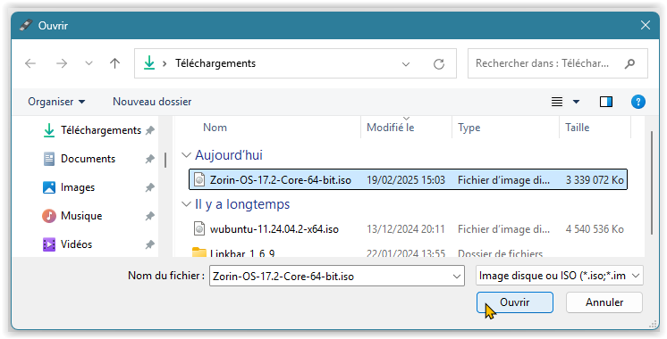 - D'une image ISO du système Linux choisi. Linux Mint, Ubuntu et bien d'autres proposent naturellement ce type de fichier.