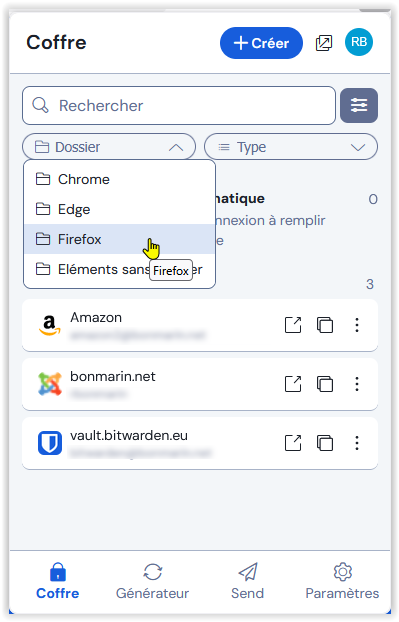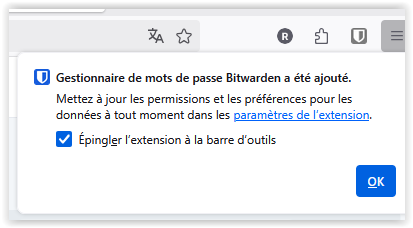 Si vous utilisez plusieurs navigateurs, il est souhaitable d'installer l'extension Bitwarden pour chacun d'eux.