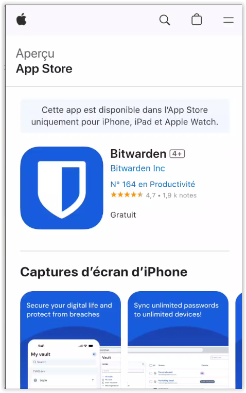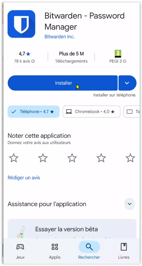 Installer l'application Bitwarden sur votre smartphone